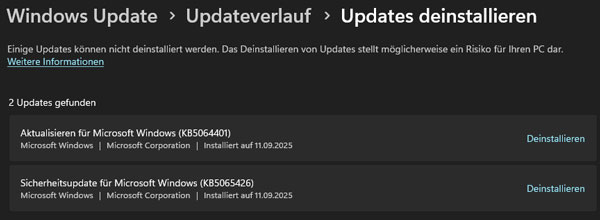 Unter Umständen, müssen Sie zu erst die Deinstallation des Updates KB5066835 beenden (inkl. Neustart des PCs),